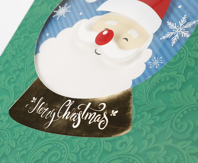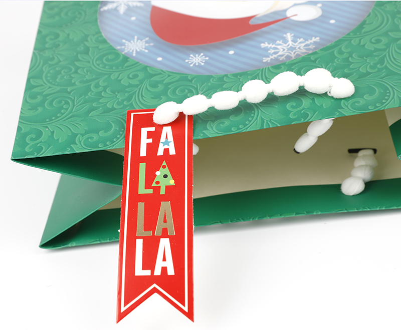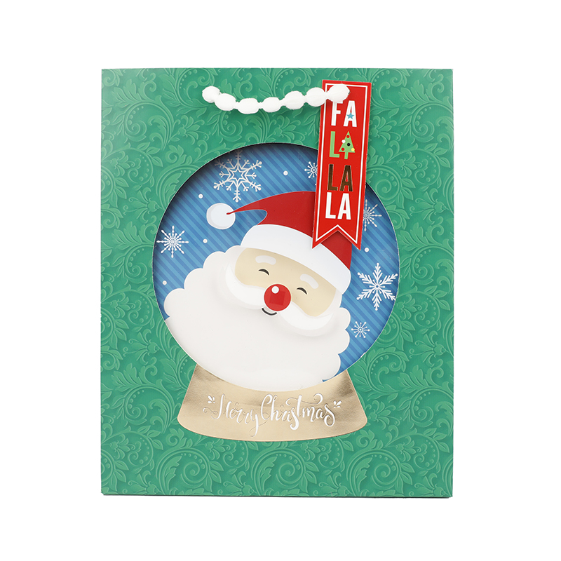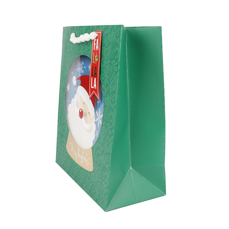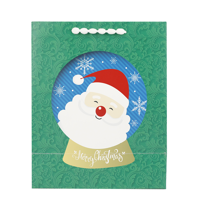 Green gift bags with santa claus