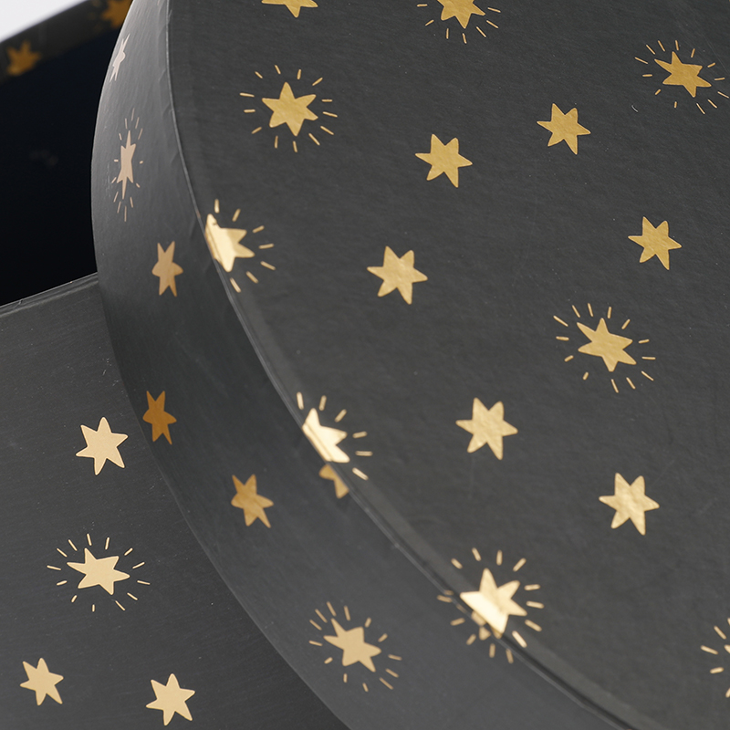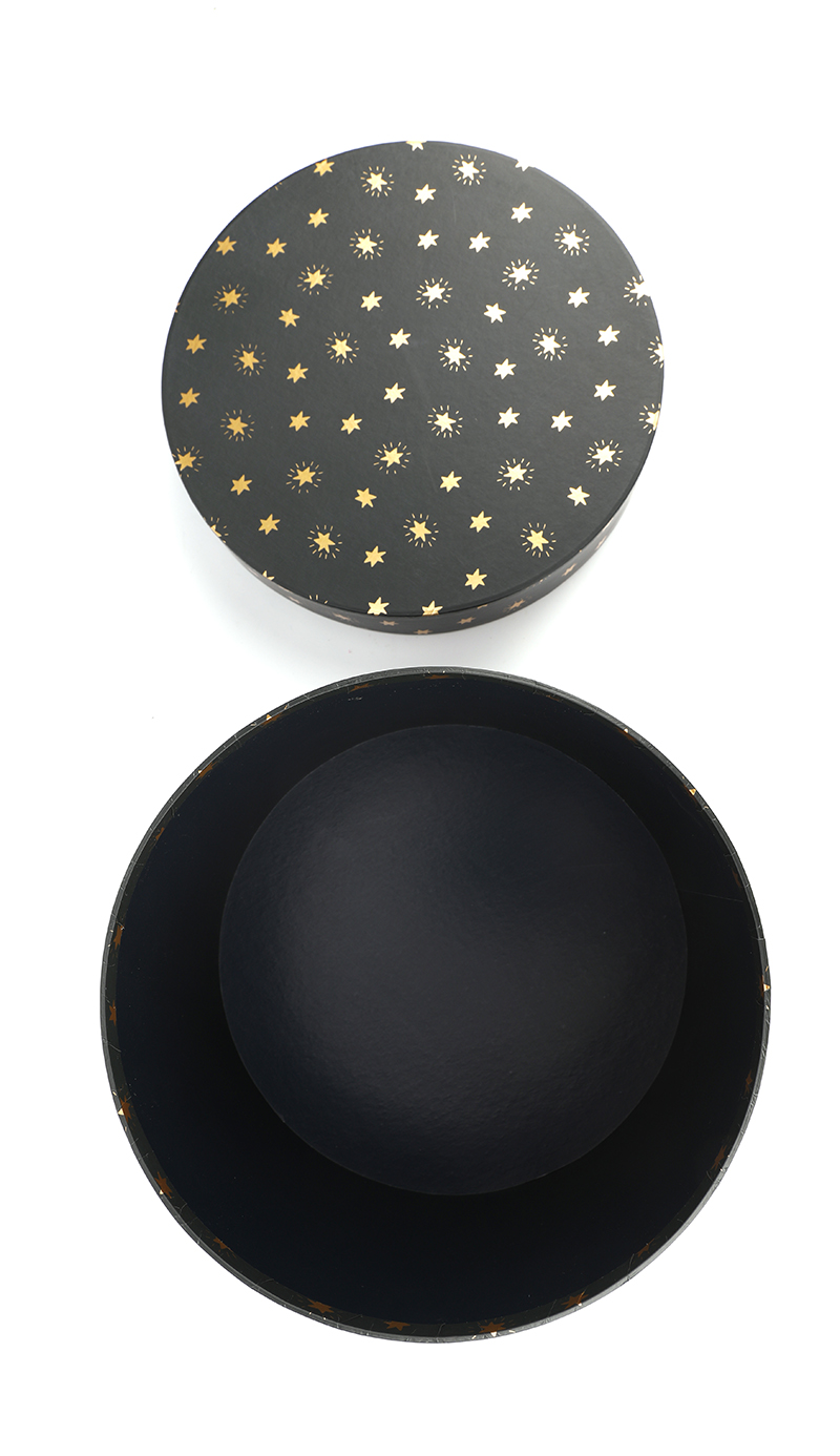 Black gift box with gold foiled stars
